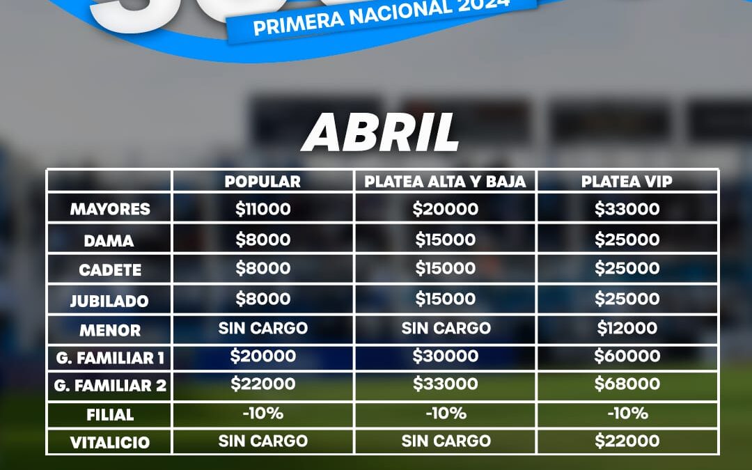 A partir del mes de abril estos son los nuevos valores de la cuota social. Además, para aquellos socios que presentan deudas, se podrán asociar sin pagar el reempadronamiento. Deberán abonar dos meses por adelantado (abril y mayo). Al realizar esto, perderá la antigüedad como socio.